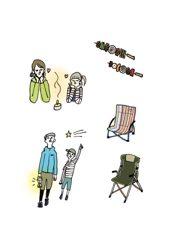 アウトドアブランドLOGOSのカタログ『はじめてのBBQ & CAMPカタログ』のイラストを描きました。